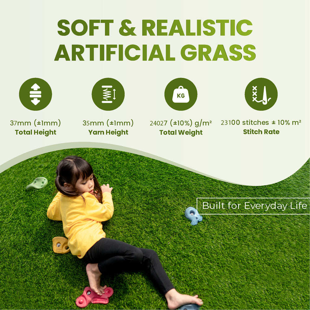 This turf is both pet and child friendly, making it a practical solution for family gardens. Available in 2m, 4m, and 5m widths, London 35mm simplifies installation across various surfaces and outdoor spaces.